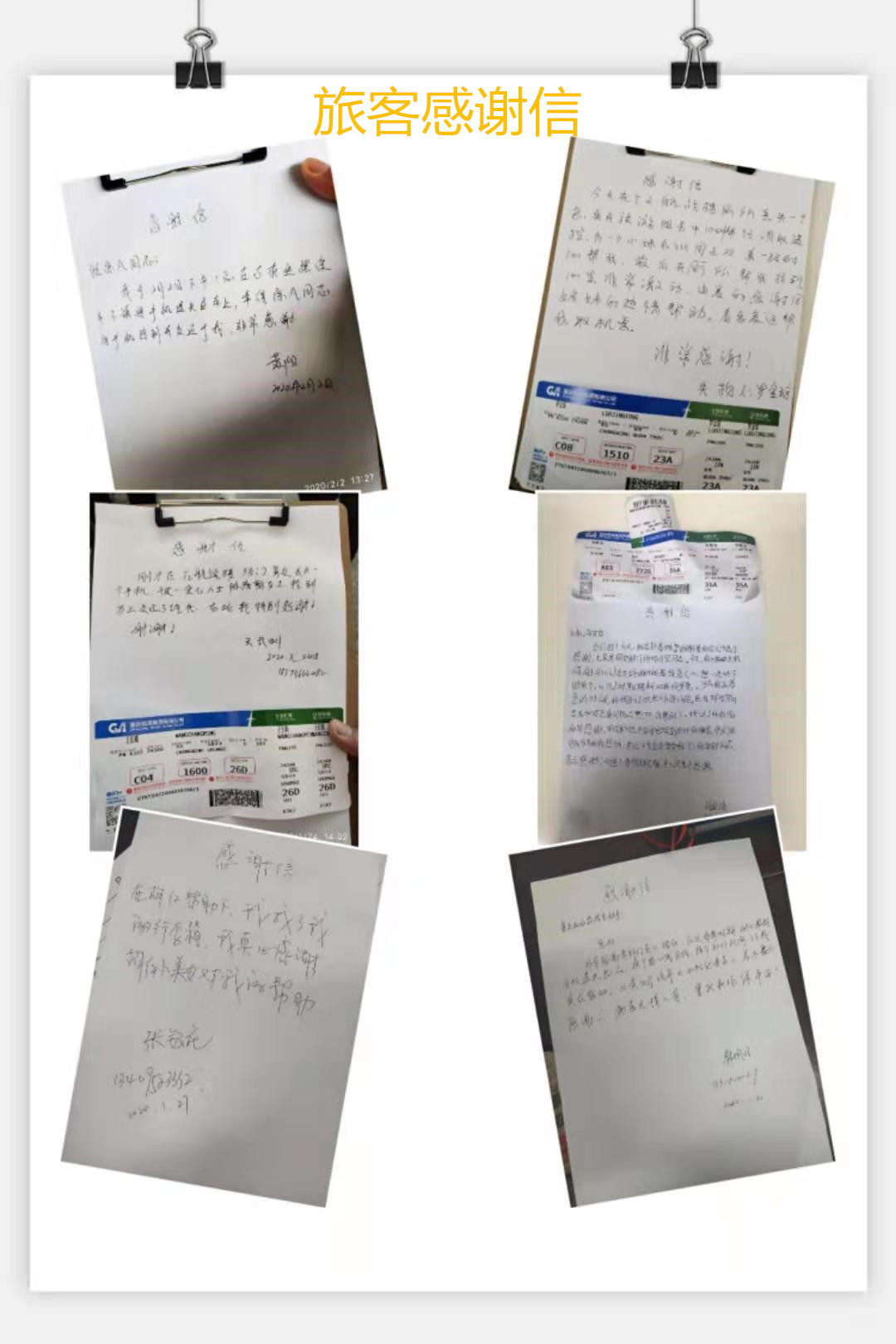 旅客亲笔留下的感谢信。