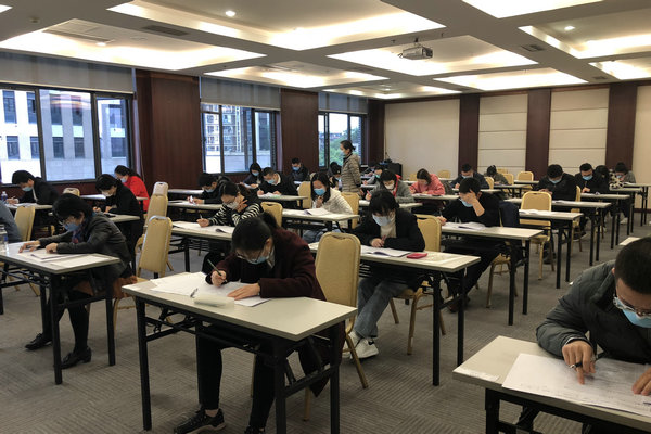 2020年4月21日上午,bevictor伟德官网2020年度公开招聘笔试在重庆财政学校举行。考点配备了人体测温仪、口罩、消毒水等防疫物资,设置了临时隔离观察室,标准化考场8间,共有227名经过严格筛选的应聘人员参加笔试。在笔试过程中,公司会同第三方考试机构,按照预定方案,精心组织,周密部署,严格落实,考务人员各司其职,积极配合,确保考试有条不紊进行。公司纪检监察机构对整个笔试进行全程监督,无违纪违规现象。